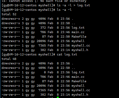 void CheckRedir(char cmd[]))检测是否是重定向,将ls -l -a > log.txt-> ls -l -a\0log.txt,filename = log.txt,redir_type = OUTPUT_REDIR,将ls -l -a交给cmd中,进行后面的普通命令行解析 - 同时如果