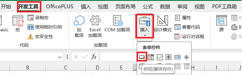 回到Excel中的Sheet1工作表,工作栏中依次选择【开发工具】【插入】【表单控件】,添加两个按钮,命名为"游戏开始"和"提交猜测",并分别关联宏代码StartGame和MakeMove(添加按钮时会有提醒,选中宏代码关联即可)