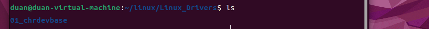 在 Ubuntu 中创建一个目录用来存放 Linux 驱动程序,比如我创建了一个名为 Linux_Drivers 的目录来存放所有的 Linux 驱动。在 Linux_Drivers 目录下新建一个名为 1_chrdevbase 的子目录来存放本实验所有文件,如下图所示: