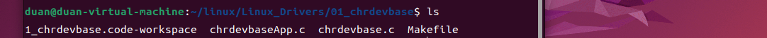 并新建 一个chrdevbase.c 文件,完成以后 1_chrdevbase目录中的文件如下图所示: