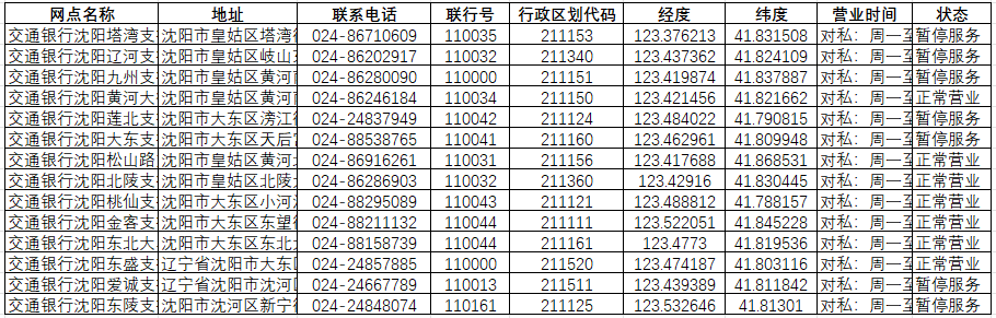 filename = "交通银行网点.csv"