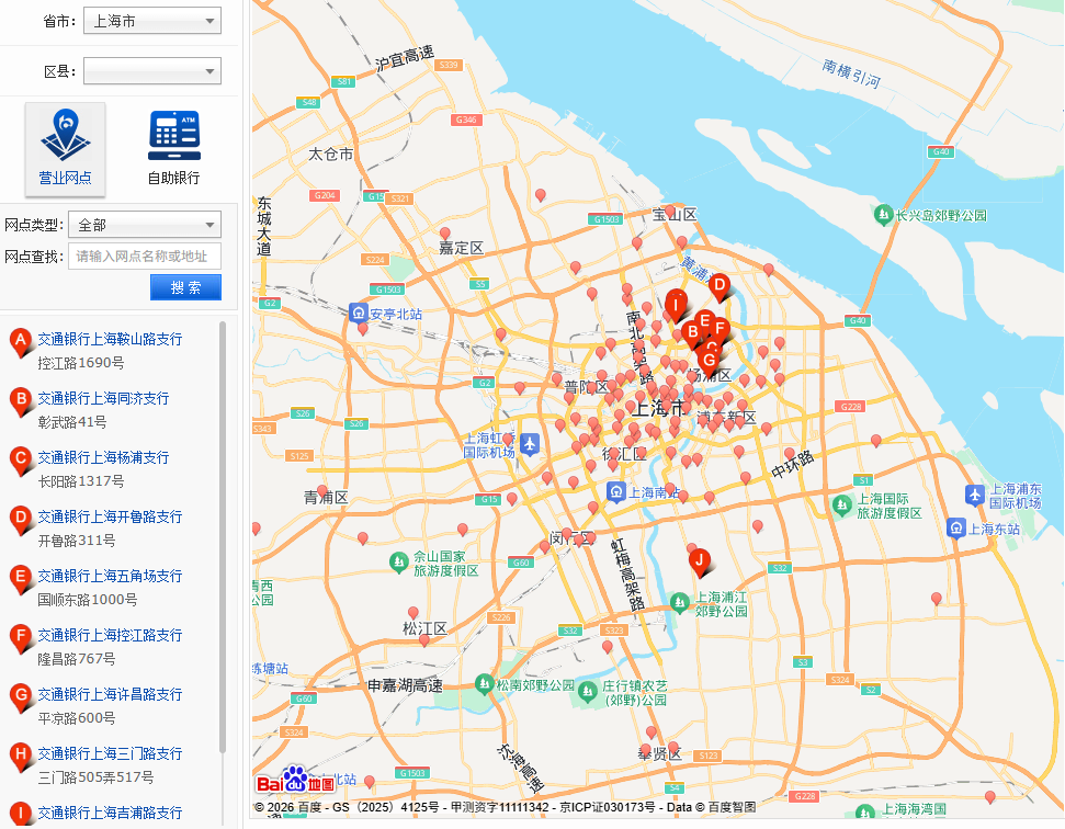 交通银行网点查询网址:交通银行-网点查询