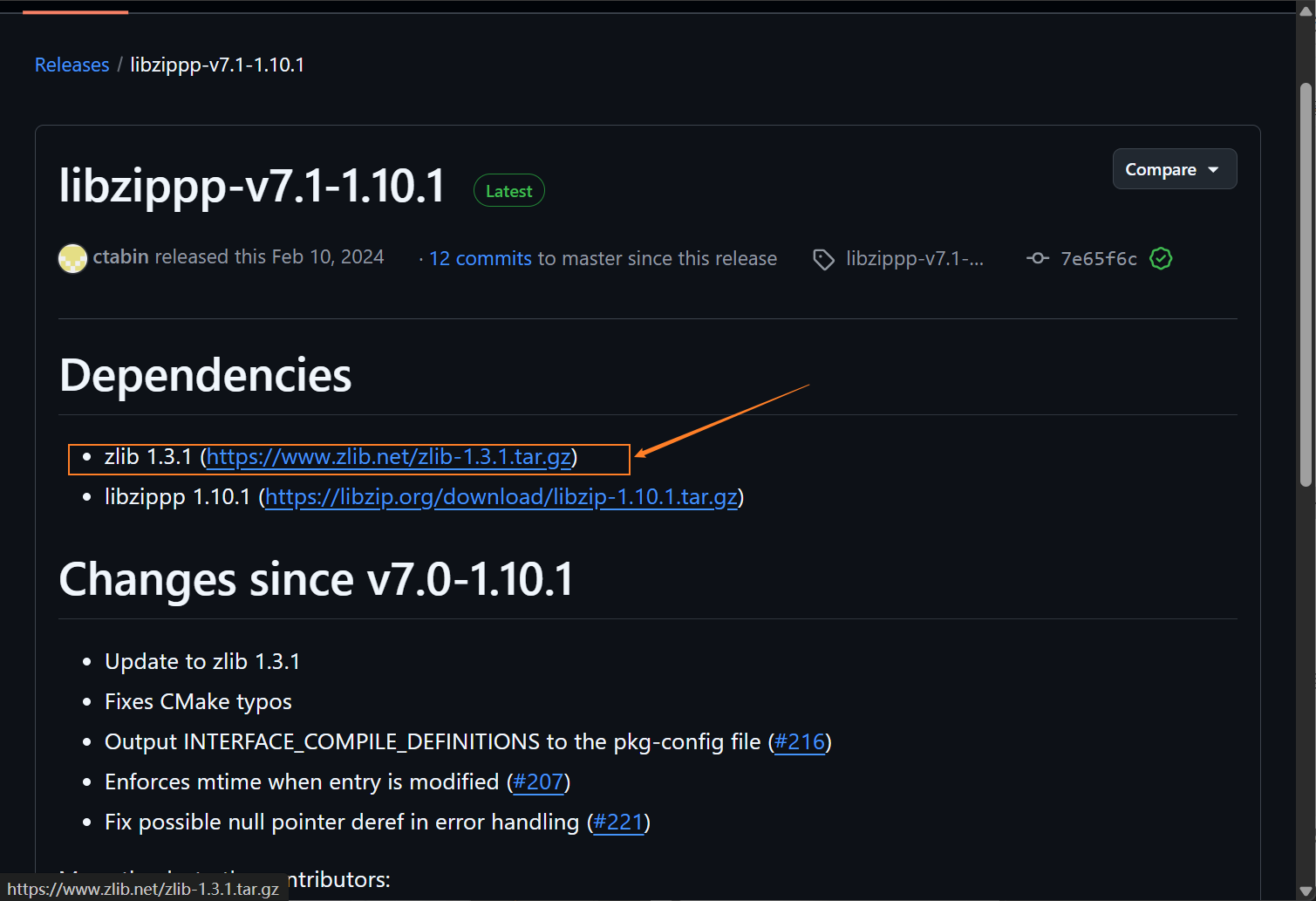 https://github.com/ctabin/libzippp/releases/tag/libzippp-v7.1-1.10.1