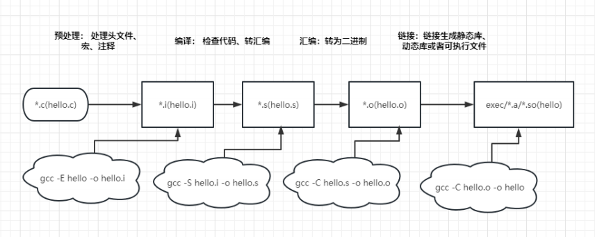 • 编译是指将源代码文件(如C/C++文件)经过预处理、编译、汇编和链接 等步骤,转换为可执行文件的过程。将源代码转换成机器代码的过程称为编译(Compile),编译的工作需要编译器(Complier)来完成。