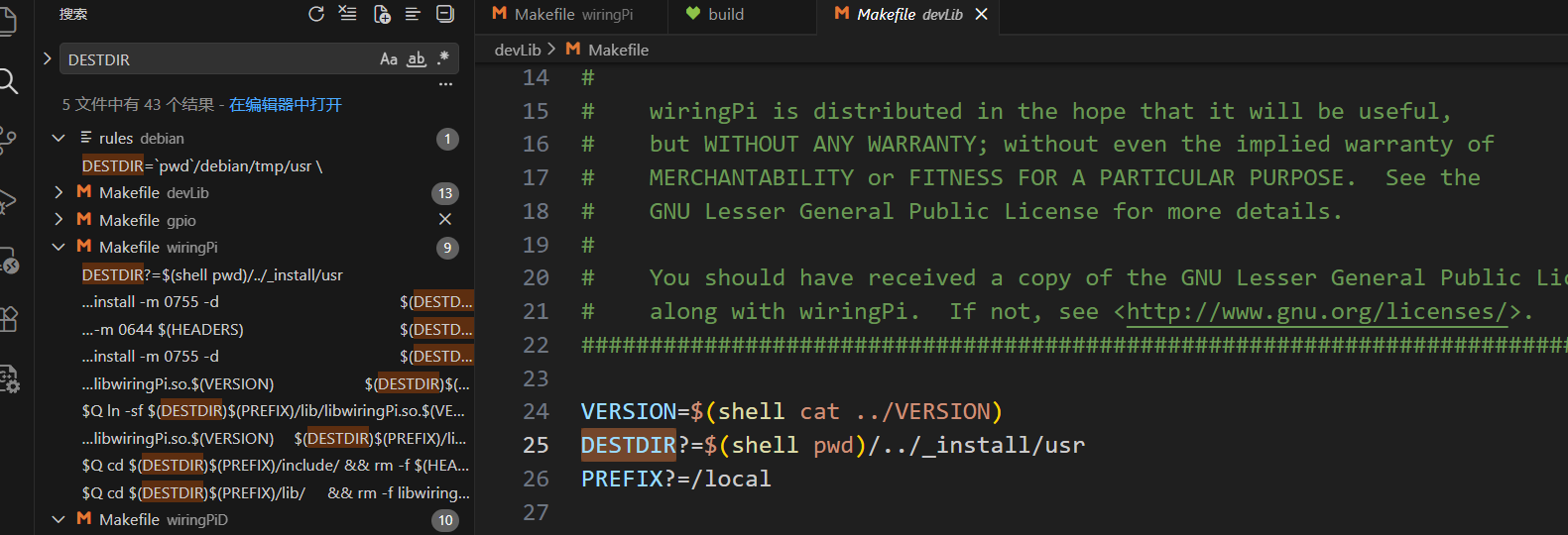 2.4 修改wiringPi/Makefile,修改devLib/Makefile