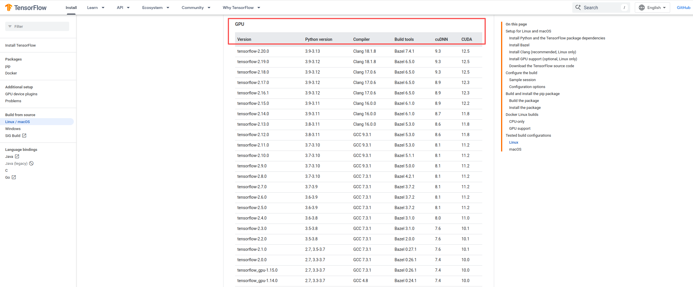 官网:https://www.tensorflow.org/install/source#gpu