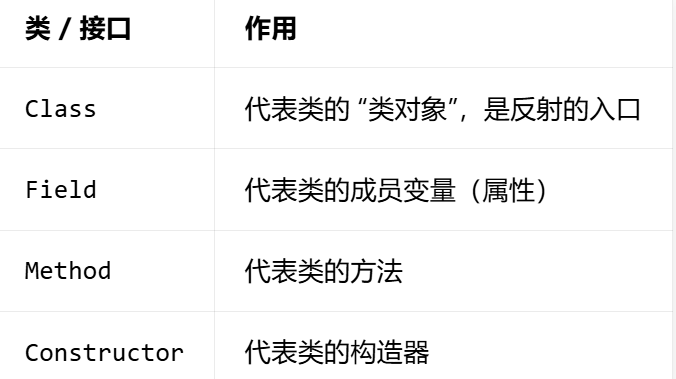 - 框架核心:Spring、MyBatis、Hibernate等框架大量使用反射(比如 Spring的IOC容器动态创建 Bean,MyBatis的结果集映射)。