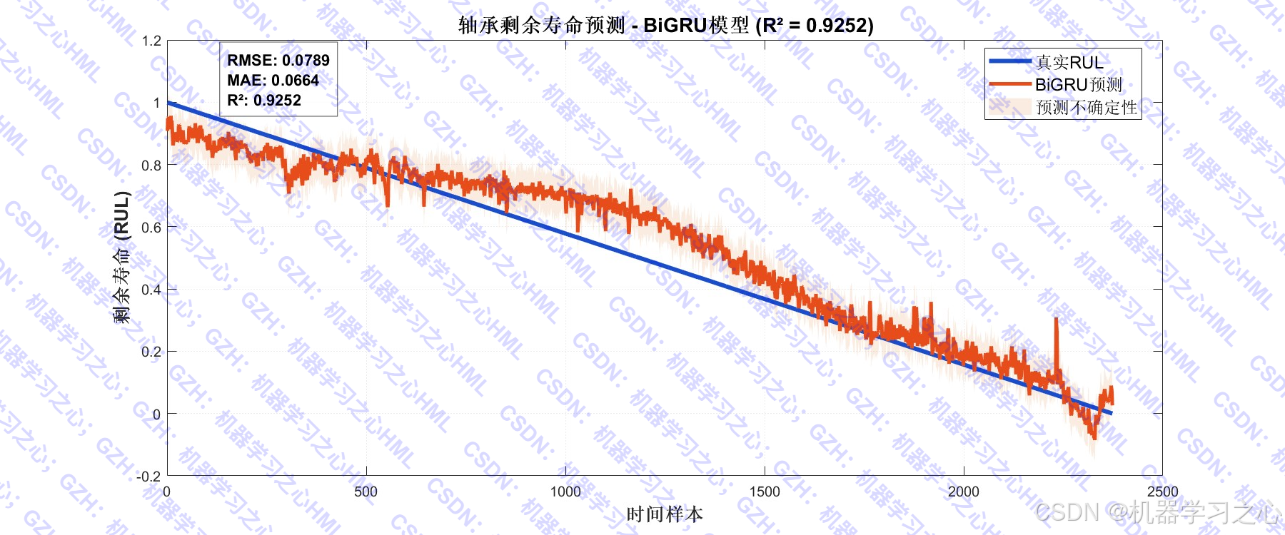 - 寿命预测:对测试轴承进行RUL预测,并输出预测结果与真实标签对比。