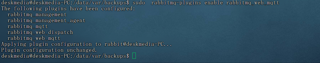 sudo rabbitmq-plugins enable rabbitmq_web_mqtt