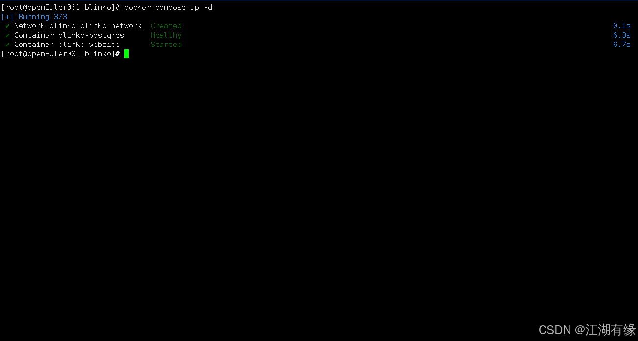 执行以下命令,使用docker compose命令快速部署Blinko。