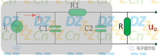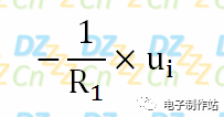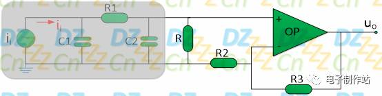 如果输入电流源ii太小,则电阻R的阻值过小则将导致两端的电压过小,继而导致后级电路无法更好地处理,我们当然可以将R值加大,但更多的时候,我们更愿意去更改运放的放大倍数,如下图所示: