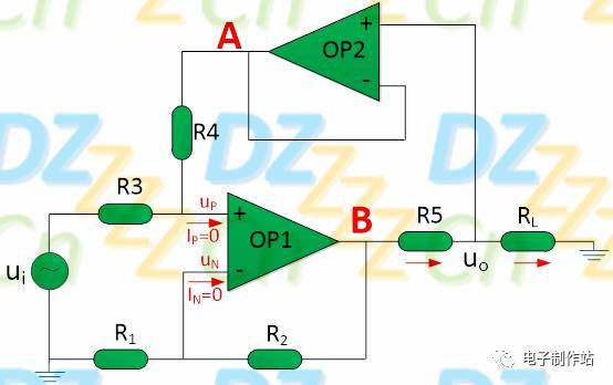 此电路增加了运放OP2组成的电压跟随器,因此uA=uo