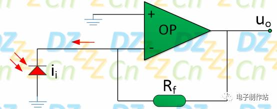 光电二极管是一种传感器,光线照射时可产生光电流,利用I-V转换电路即可将光电流转换成电压输出,由于运放的输入阻抗非常大,输出阻抗比较小,因此可以高效地进行I-V转换。