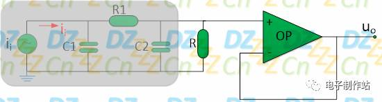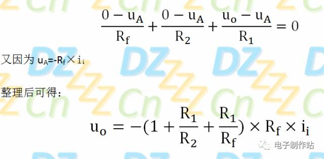 从公式中也可以看出,只要调节反馈电阻Rf的大小,就可以将输入电流转换为输出电压,当然,输入电流越小,则需要的反馈电阻越大,在高灵敏度的场合并不适用,比如输入电流是微安级,则电阻Rf就需要兆欧姆级,这显然不太现实,因为反馈电阻太大,准确度就会受到影响,因此,我们可以将此电路修改一下: