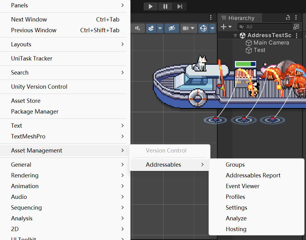 用PackManager下载Addressable包,在Windows中找到如下面板
