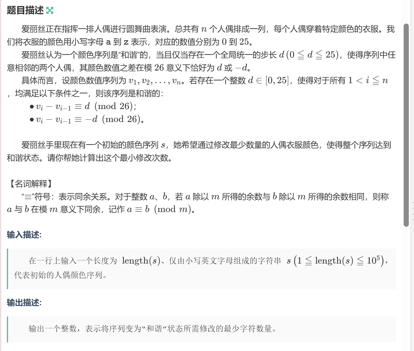 可以先枚举所有可能的 d(0到25,但对称性只需到13 ),然后对每个 d,计算在保持和谐条件下最多能保留多少原字符,再取所有 d 中的最大值
