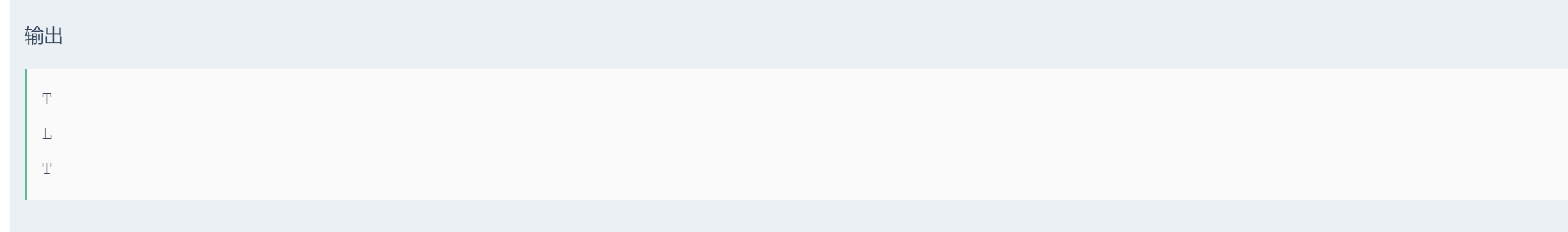 cout << "T" << endl;