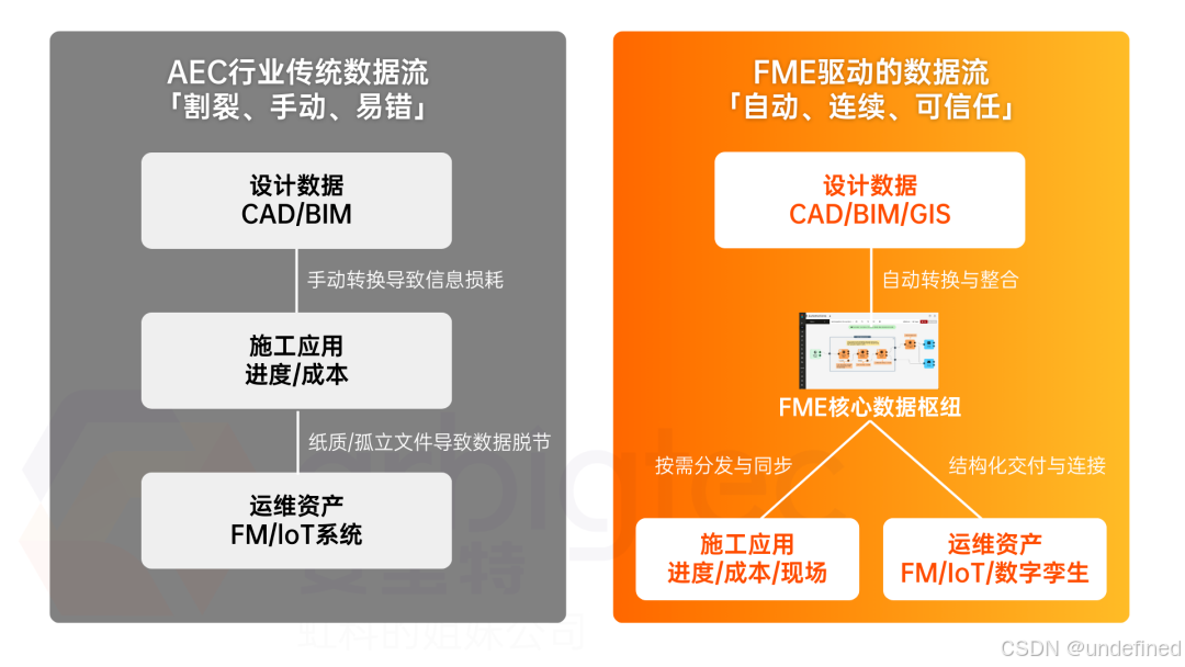 通过将FME置于数据流的核心,它能化解AEC项目各阶段的关键痛点: