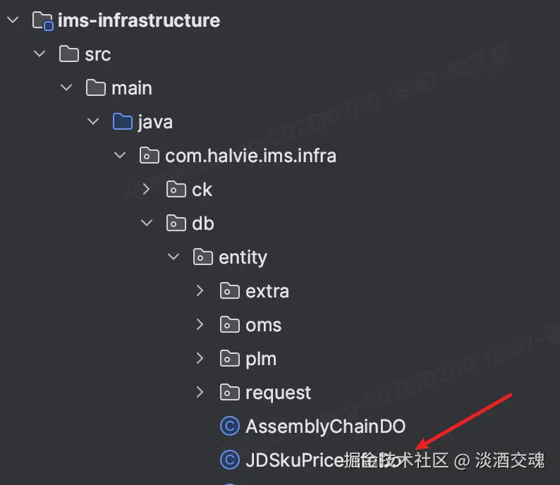 1.Entity实体类的文件夹路径如下,所以targetPackage路径写的是Entity的具体文件夹路径,targetProject写到java层即可: