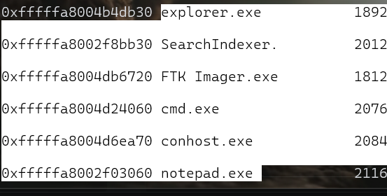 vol2 -f mem --profile=Win7SP1x64 pslist