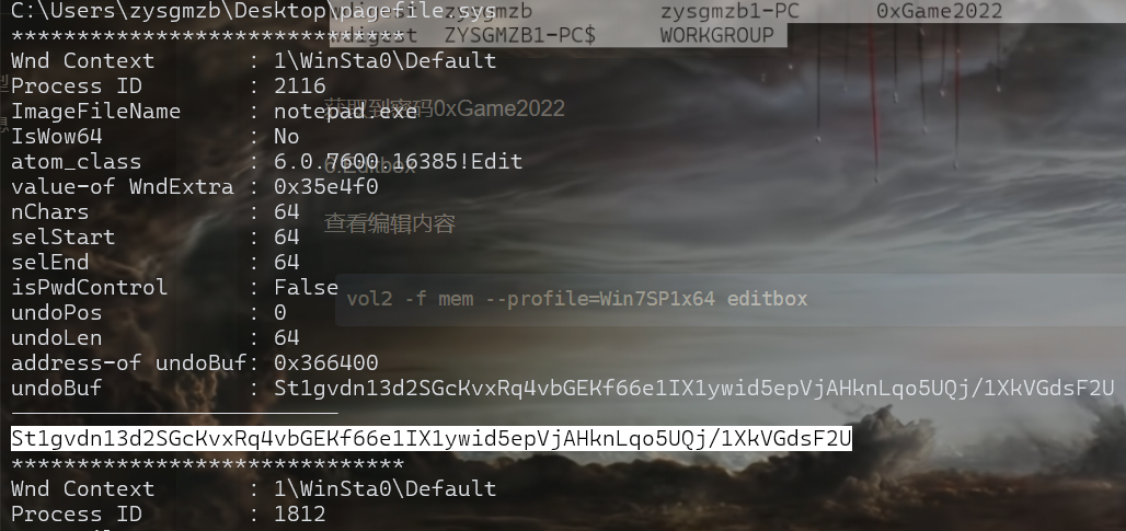 vol2 -f mem --profile=Win7SP1x64 editbox