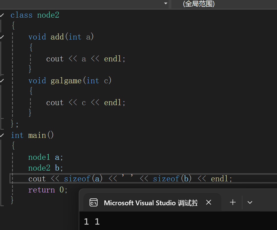 还有空类或只有成员函数的类的大小是一个字节,这一个字节单纯是为了表示该类是存在的.