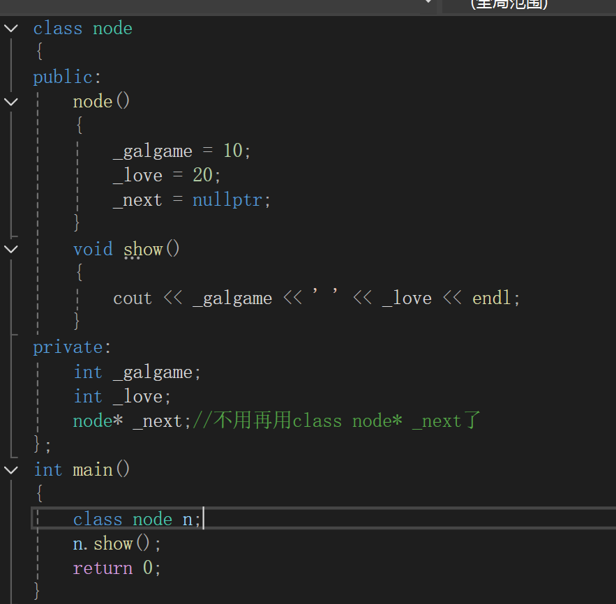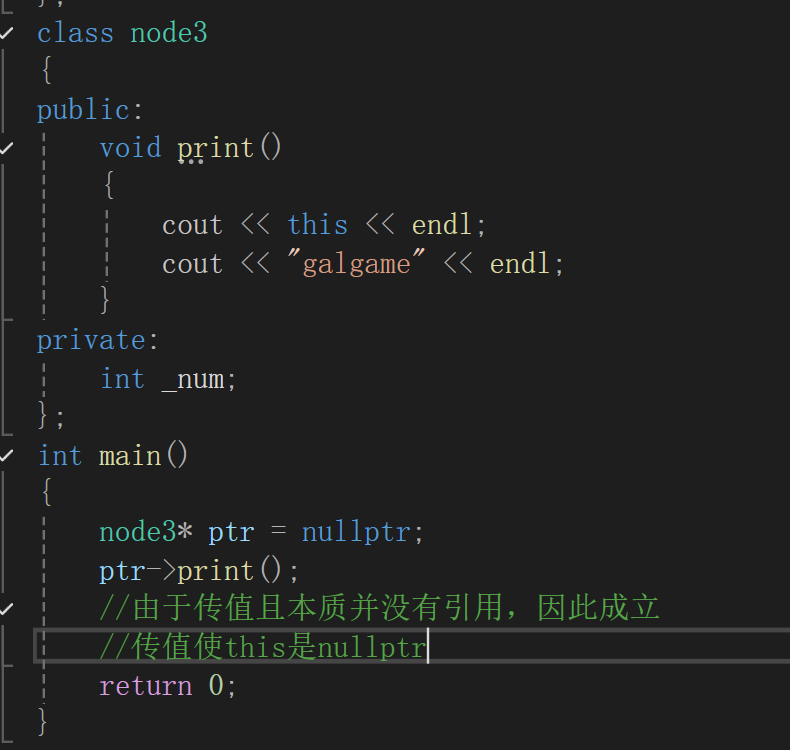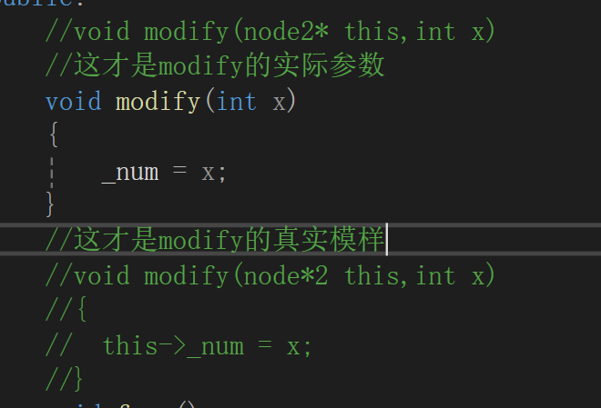 上述代码之所以要注释,是因为c++不允许在实参和形参中写出this的实参和形参,但是在函数代码中可以直接使用this的解引用.(只可以对成员变量使用)(即使不写,编译器也会对函数中的成员变量进行this添加)