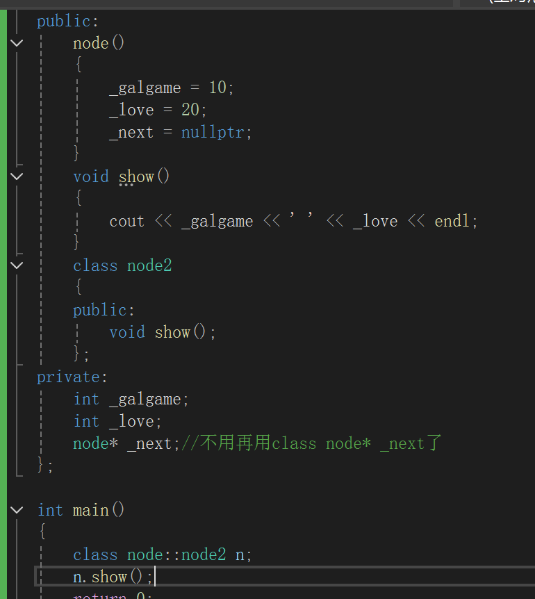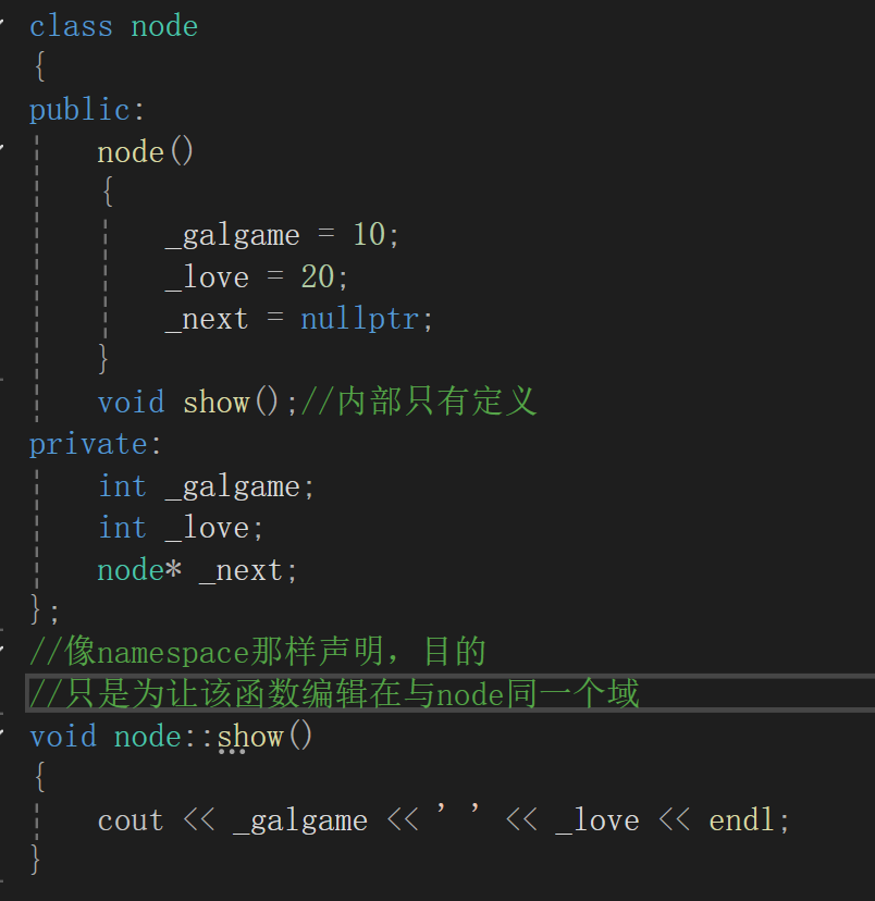 类代表了一个新的域:类域,下面代码可以说明类是一个独立的域同时每个函数前面都有inline.