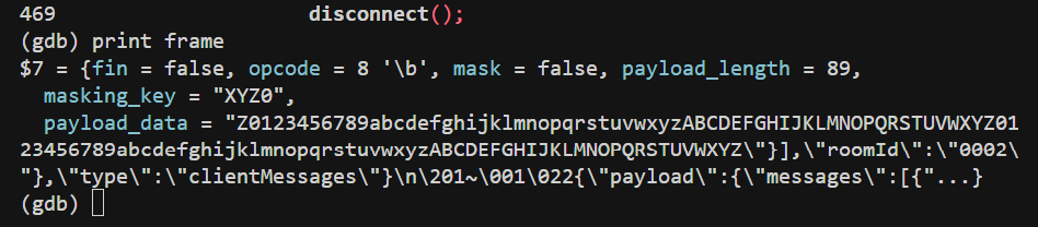 至于为啥客户端也会崩掉,我对opcode = 8的情况,也就是断联也打了断点,发现有些数据可能会被识别成断联: