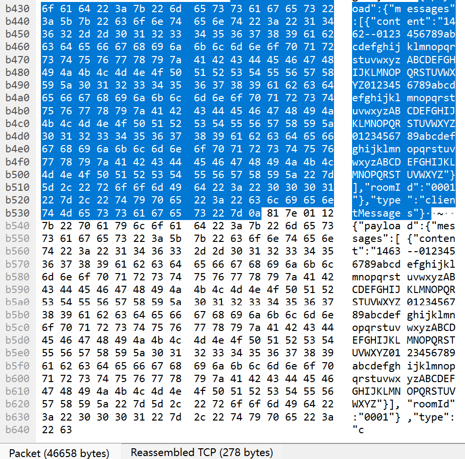 测试用的数据正好是26个字母!说明这里服务端把一个本不应该是websocket帧的数据作为了一个帧。