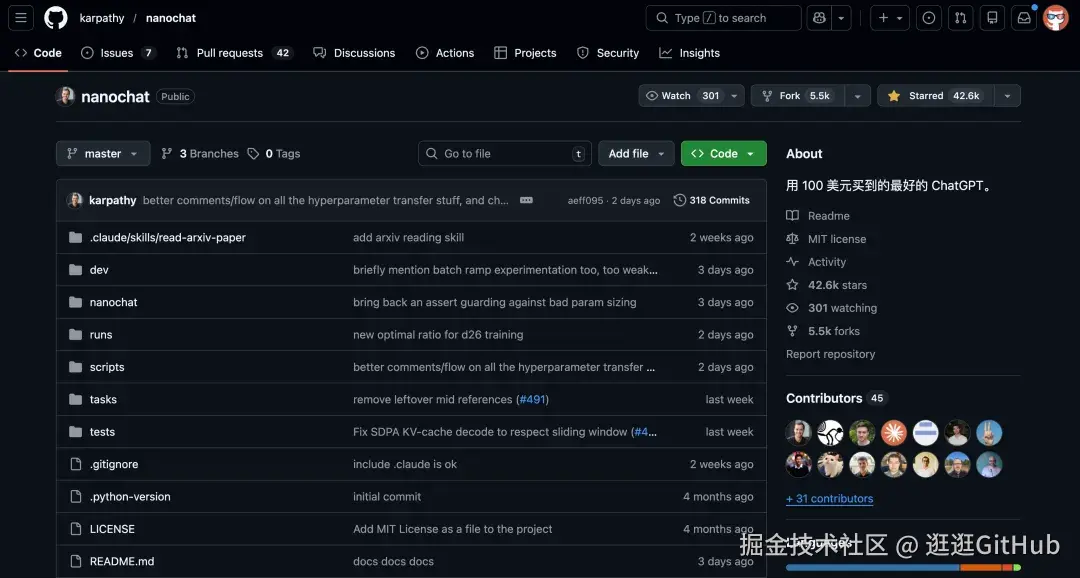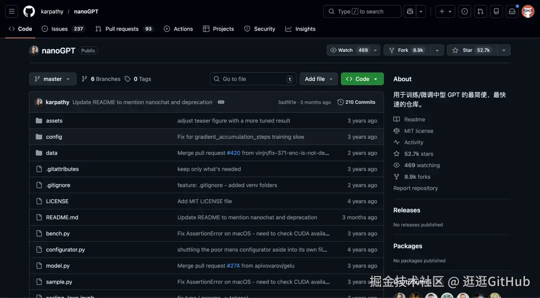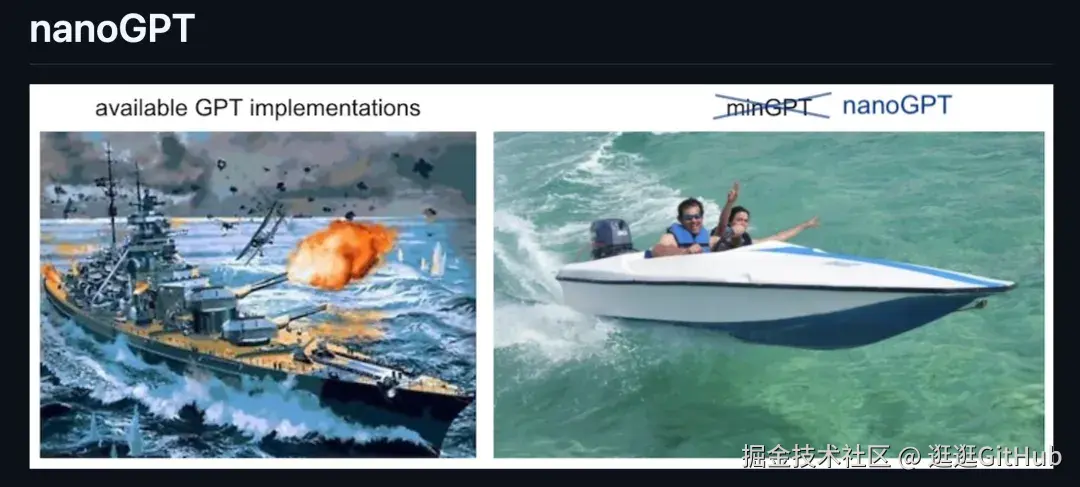 nanoGPT 是 Karpathy 为了教学和研究而开发的最简约、最清晰的 GPT 训练库。