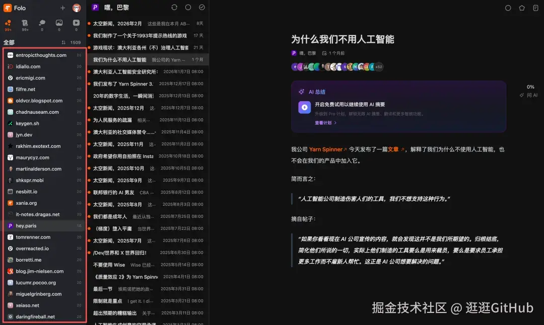 ② 下载一个 RSS 订阅器你可以选择我之前推荐过的开源的 RSS 订阅工具:Folo