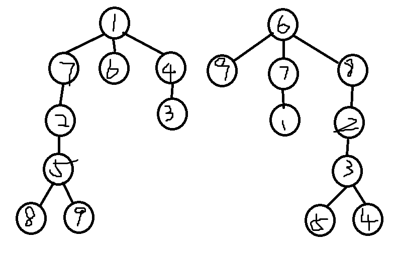 两棵树 A , B A,B A,B, B B B 由 A A A 添加一个点 u u u 得到,求出编号最小的可能的点 u u u。
