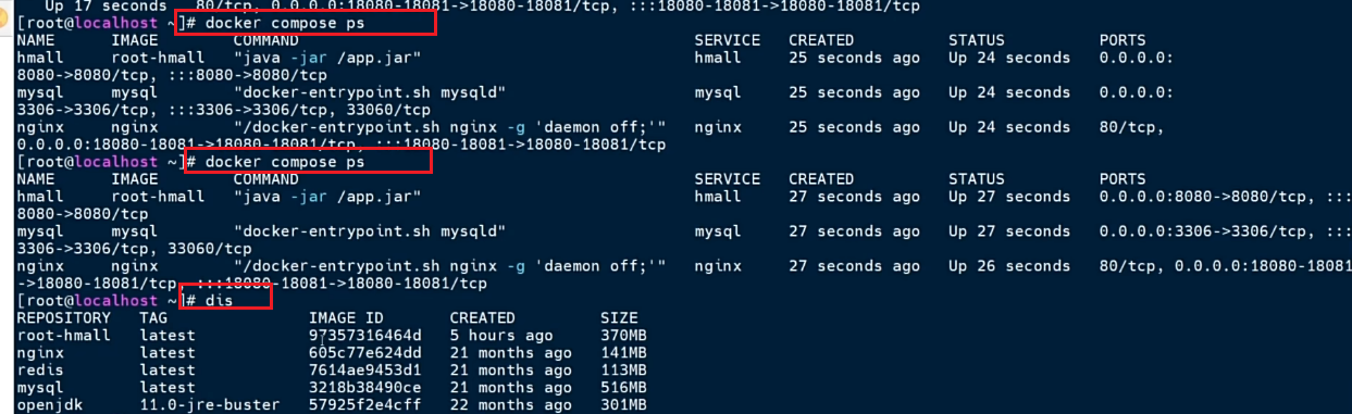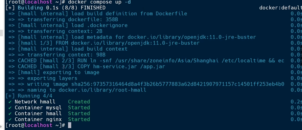 | Commands | down | 停止并移除所有容器、网络 |