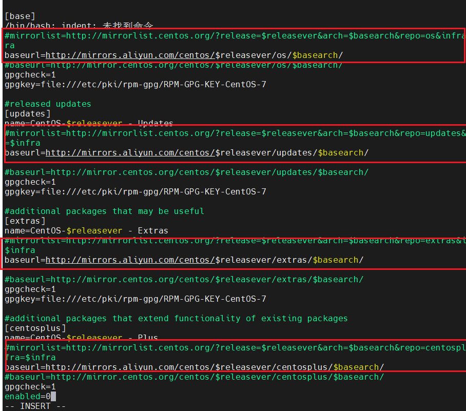 vi /etc/yum.repos.d/CentOS-Base.repo