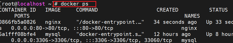 | Commands | ps | 列出所有启动的容器 |