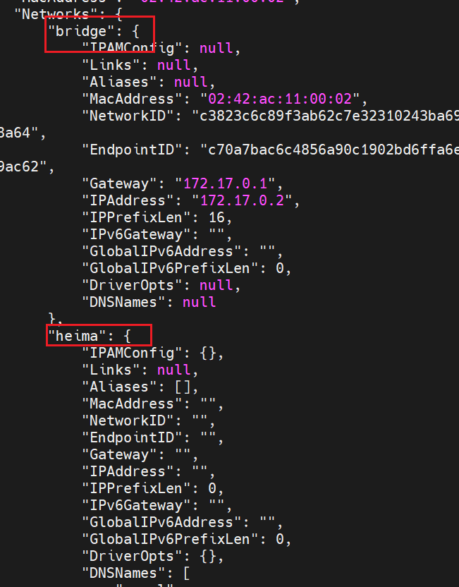 | docker network inspect | 查看网络详细信息 | docker network inspect |