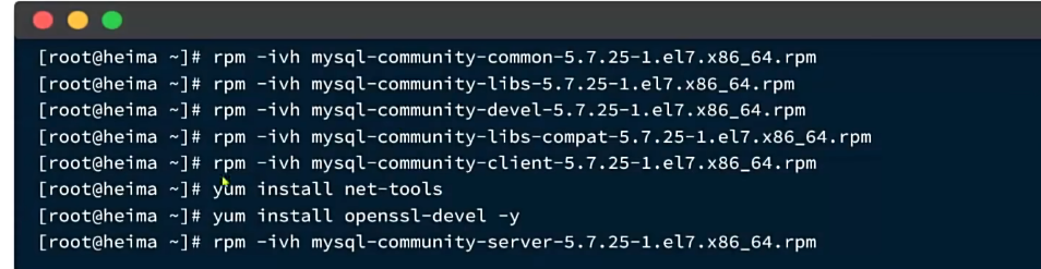比如mysql那一条命令,看似很多行,其实只有一行,使用"\"隔开了。