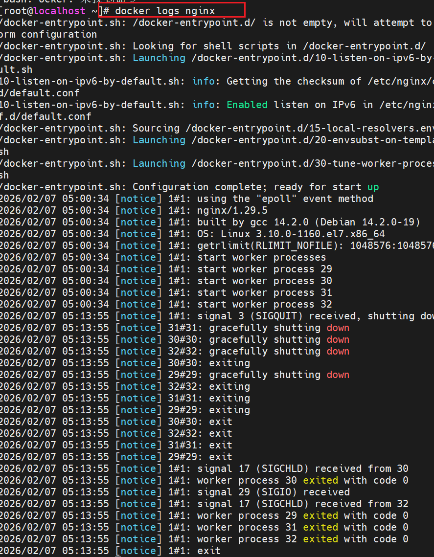 | Commands | logs | 查看指定容器的日志 |