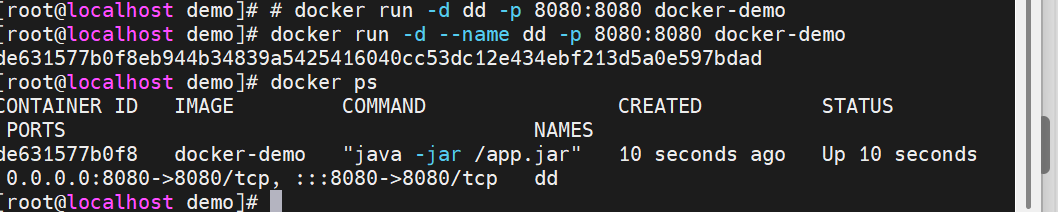 docker run -d:创建并运行一个容器,-d则是让容器以后台进程运行