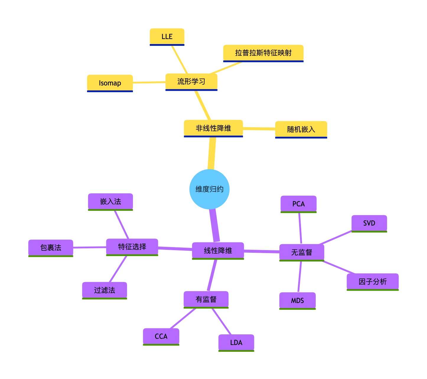 维度归约方法选择思维导图