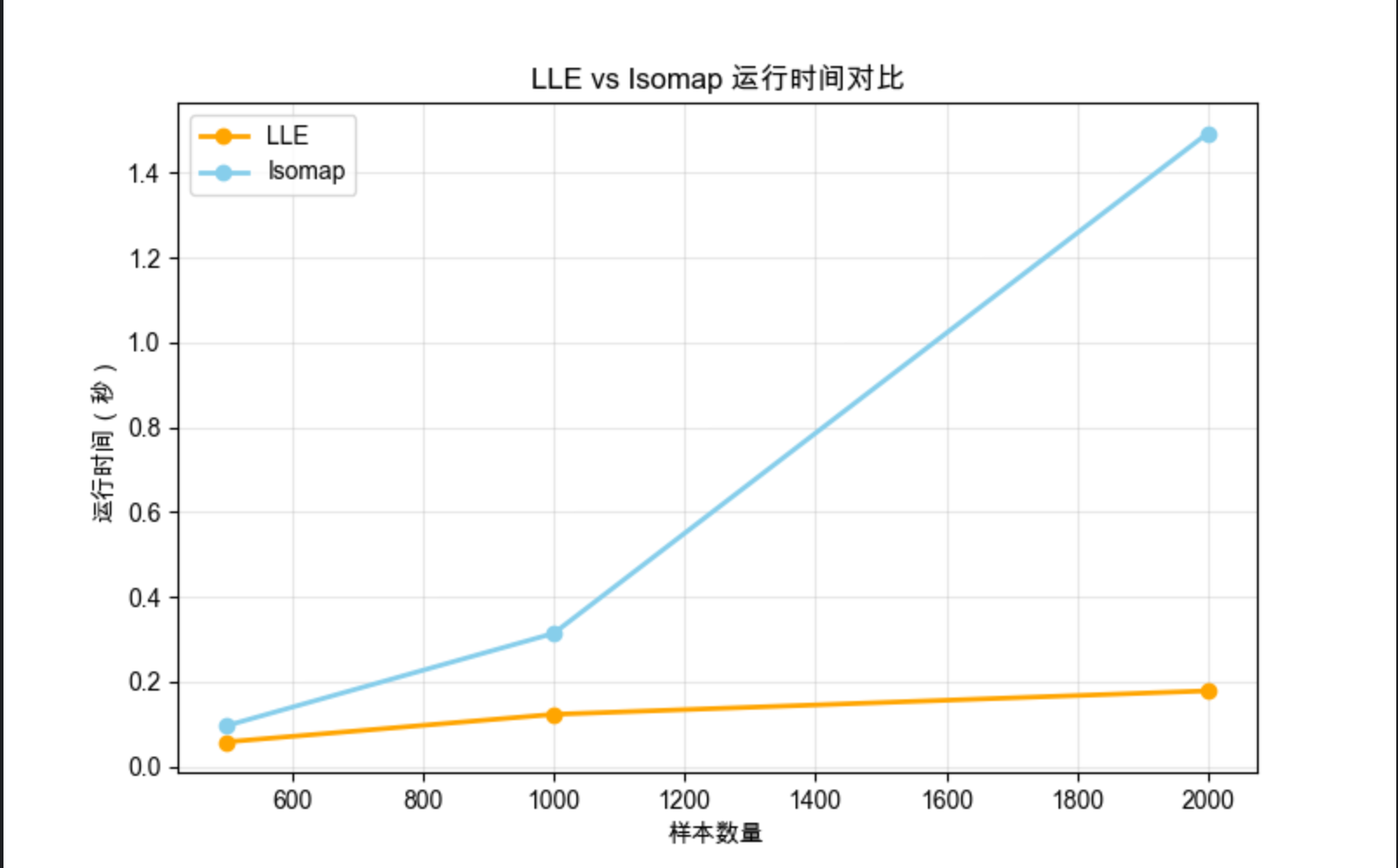 - 运行时间对比显示,样本量越大,LLE 的效率优势越明显