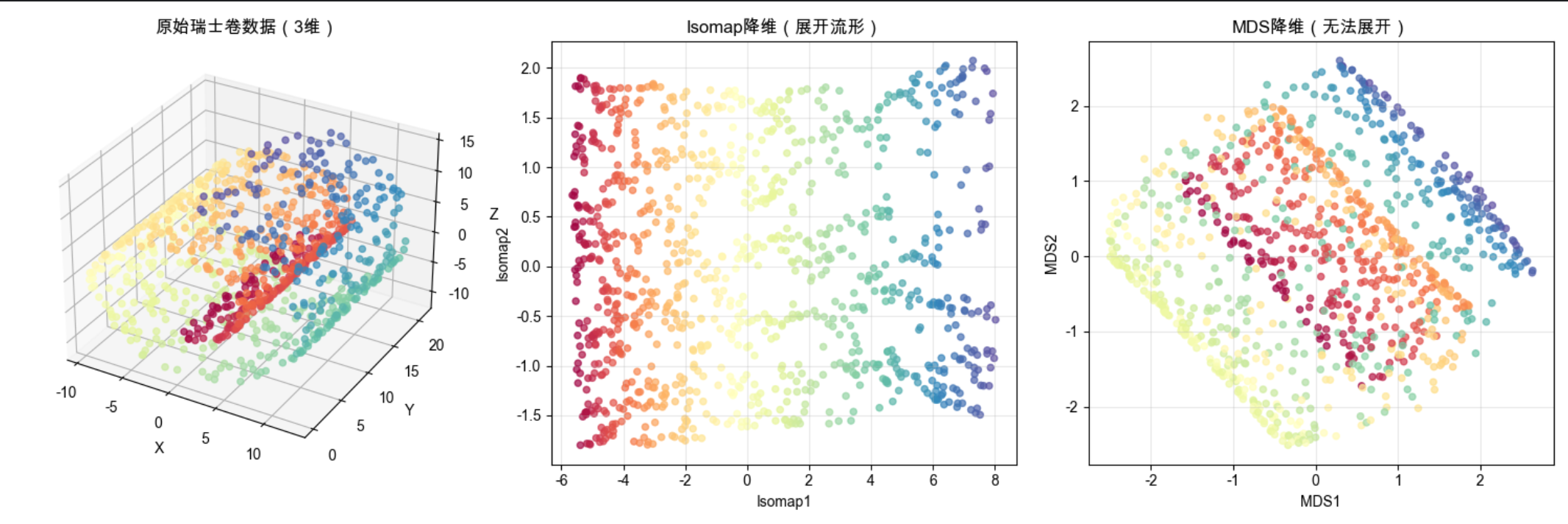 print(f"样本数{n}:LLE={lle_t:.3f}s,Isomap={isomap_t:.3f}s")