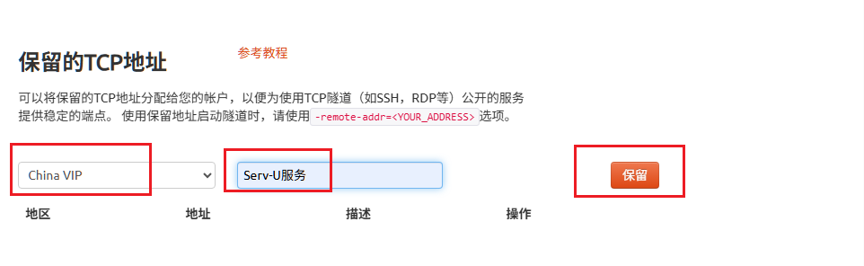 登录Cpolar官网,点击左侧的预留,找到保留的tcp地址,我们来为Serv-U远程连接保留一个固定的地址: