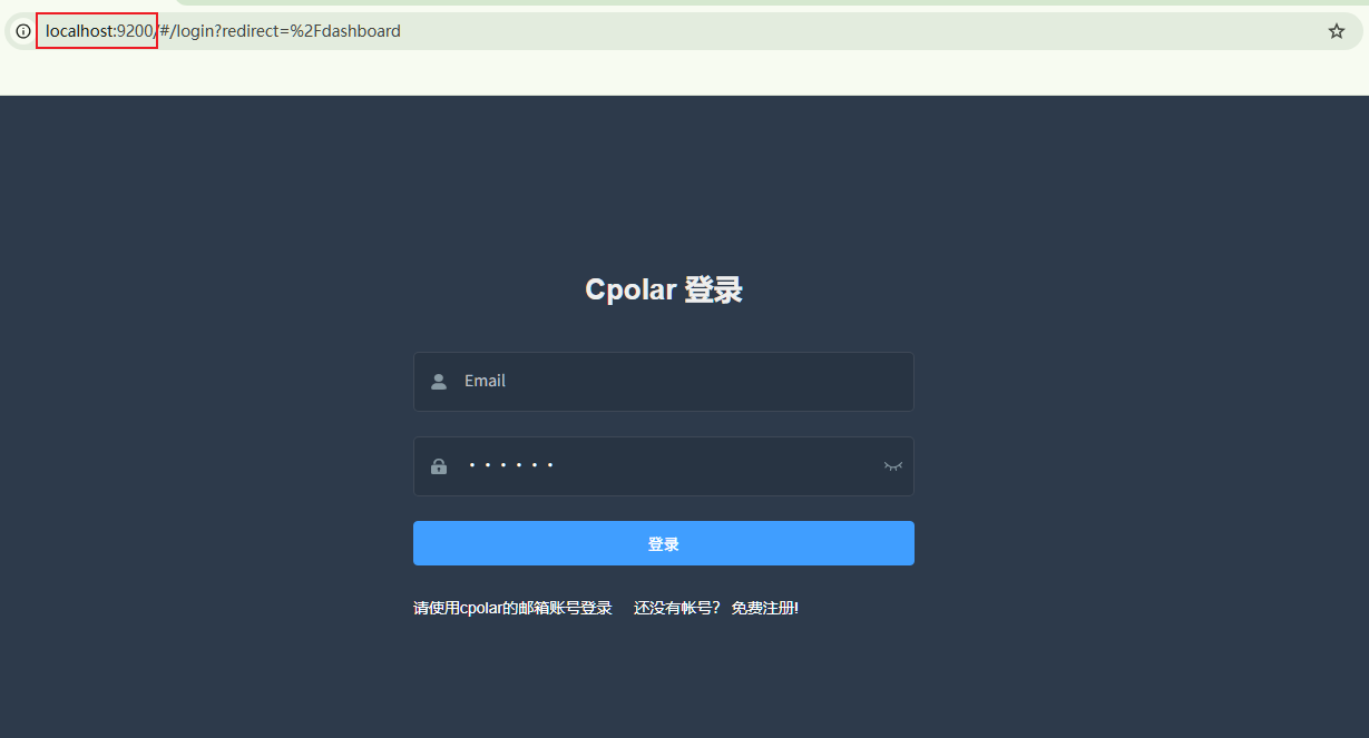 Cpolar安装成功后,在浏览器上访问本地9200端口【http://localhost:9200】,使用cpolar账号登录,即可看到Cpolar 管理界面,然后一切设置只需要在管理界面完成即可!