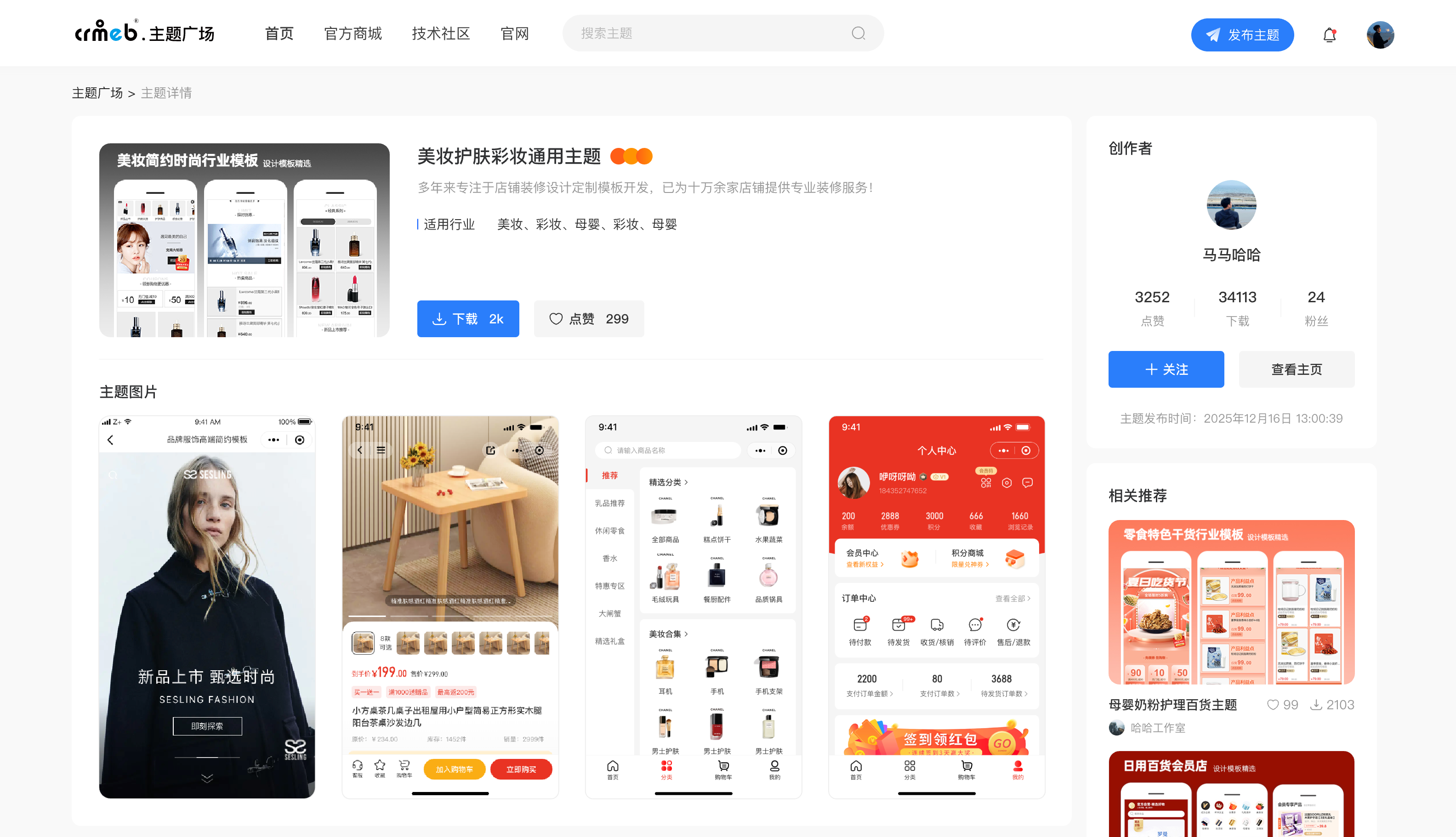 模版市场是CRMEB打造的一个主题模版广场,在这里将实现: