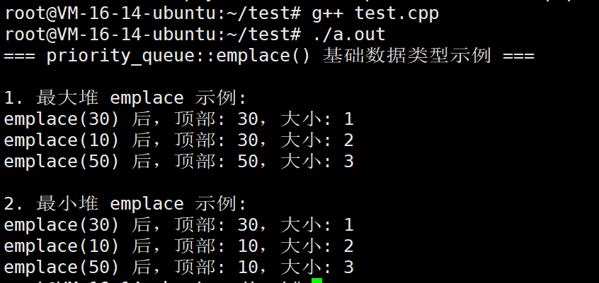 std::cout << "1. 最大堆 emplace 示例:" << std::endl;