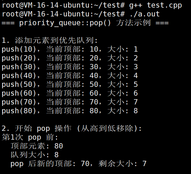 std::cout << "=== priority_queue::pop() 方法示例 ===\n" << std::endl;