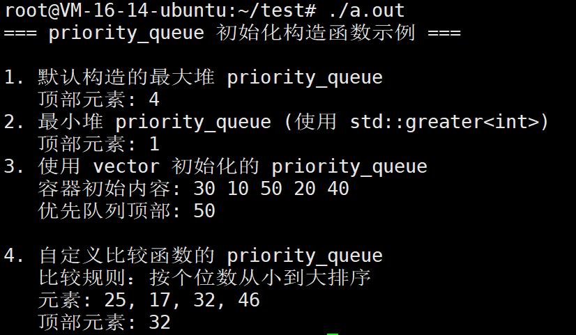 std::cout << " 顶部元素: " << pq.top() << std::endl;