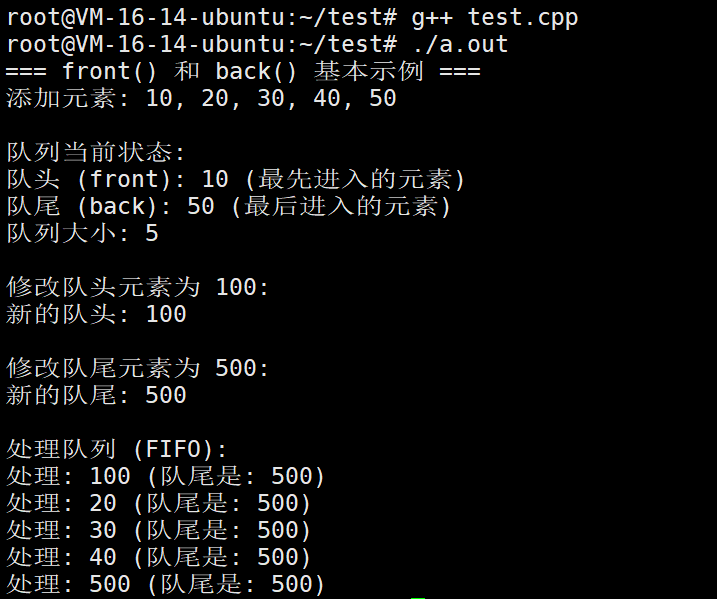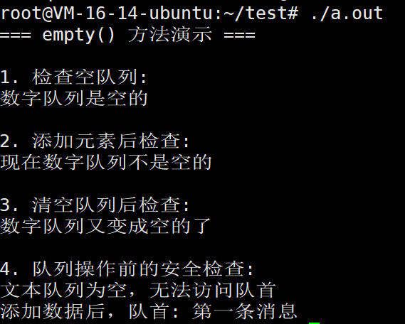 // emptyQueue.pop(); // 未定义行为!可能导致崩溃